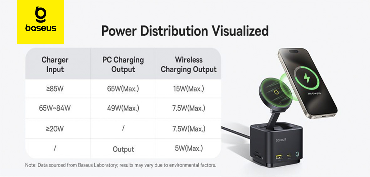 🧠 Technologie intelligente Baseus BPS II → Répartition optimale de la puissance selon le type d’appareil.