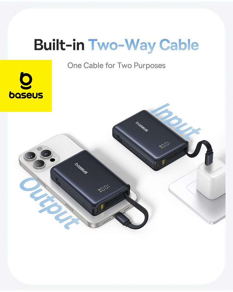 Le Baseus PicoGo 45 W combine vitesse, praticité et élégance. Grâce à son câble Type-C intégré et sa puissance de 45 W, il recharge rapidement vos smartphones, tablettes ou ordinateurs portables où que vous soyez. 💼⚡
