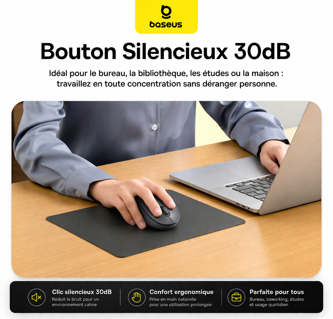 Travaillez plus vite, plus confortablement et sans bruit avec la souris sans fil Baseus F02.